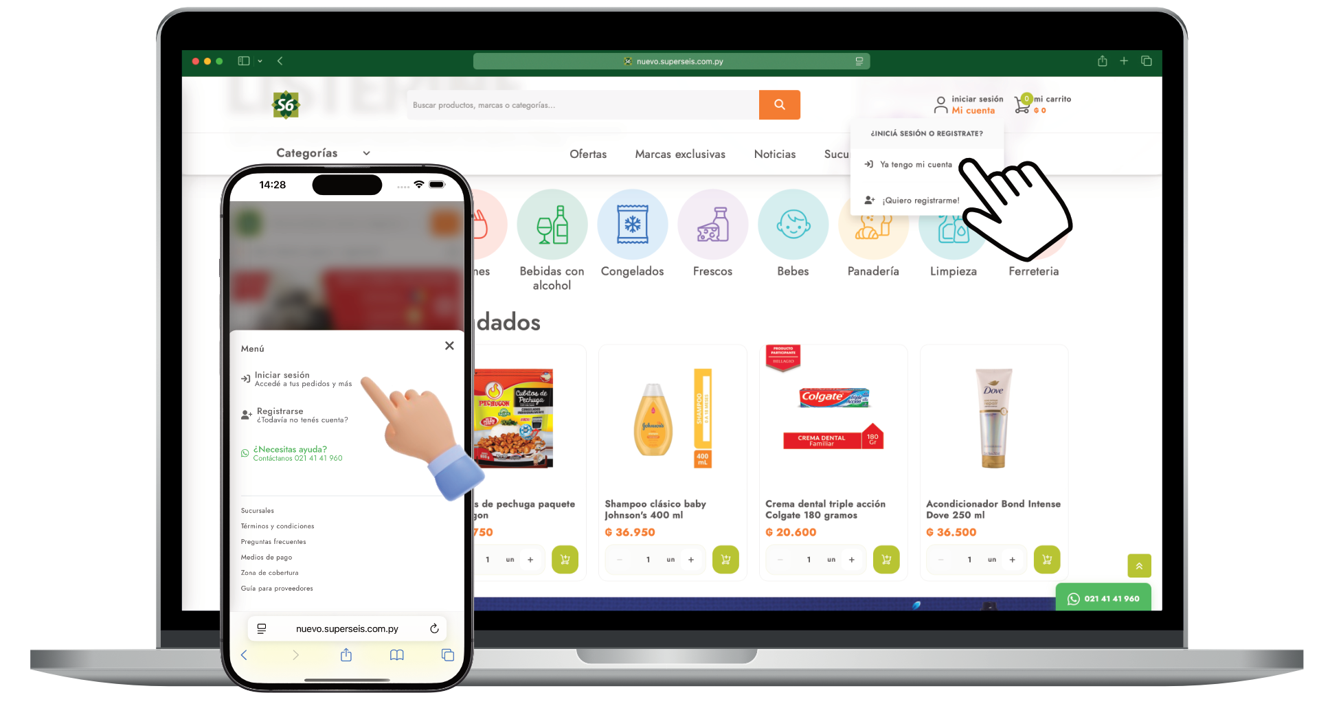 Puede llegar hasta tu producto deseado a través de nuestro menú de categorías o utilizando nuestro buscador.