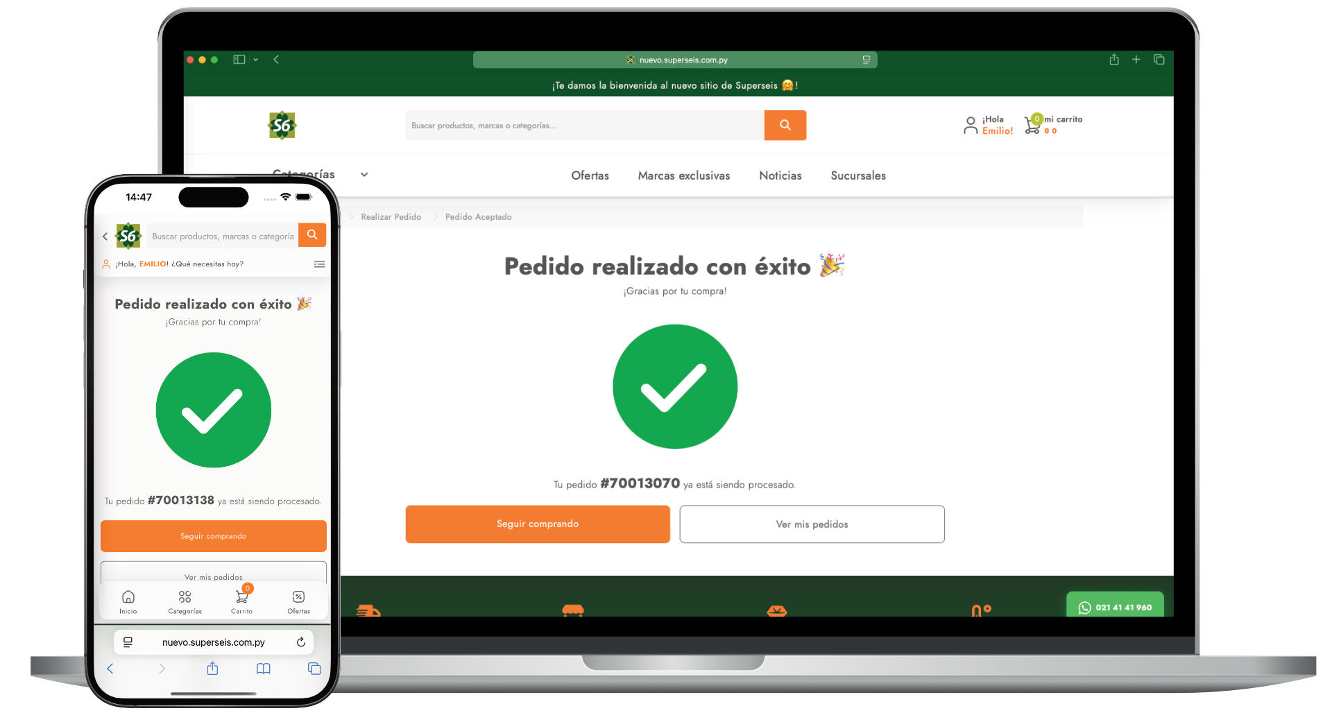 ¡FELICITACIONES! Has completado una compra. Puedes ver el número de tu pedido. Te enviaremos un email con los detalles de la compra. Una vez que la compra se empiece a procesar, te enviaremos otros correo con los datos de seguimiento del pedido. ¡Gracias por elegir Superseis!