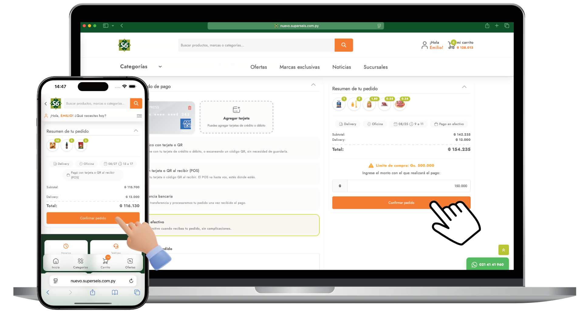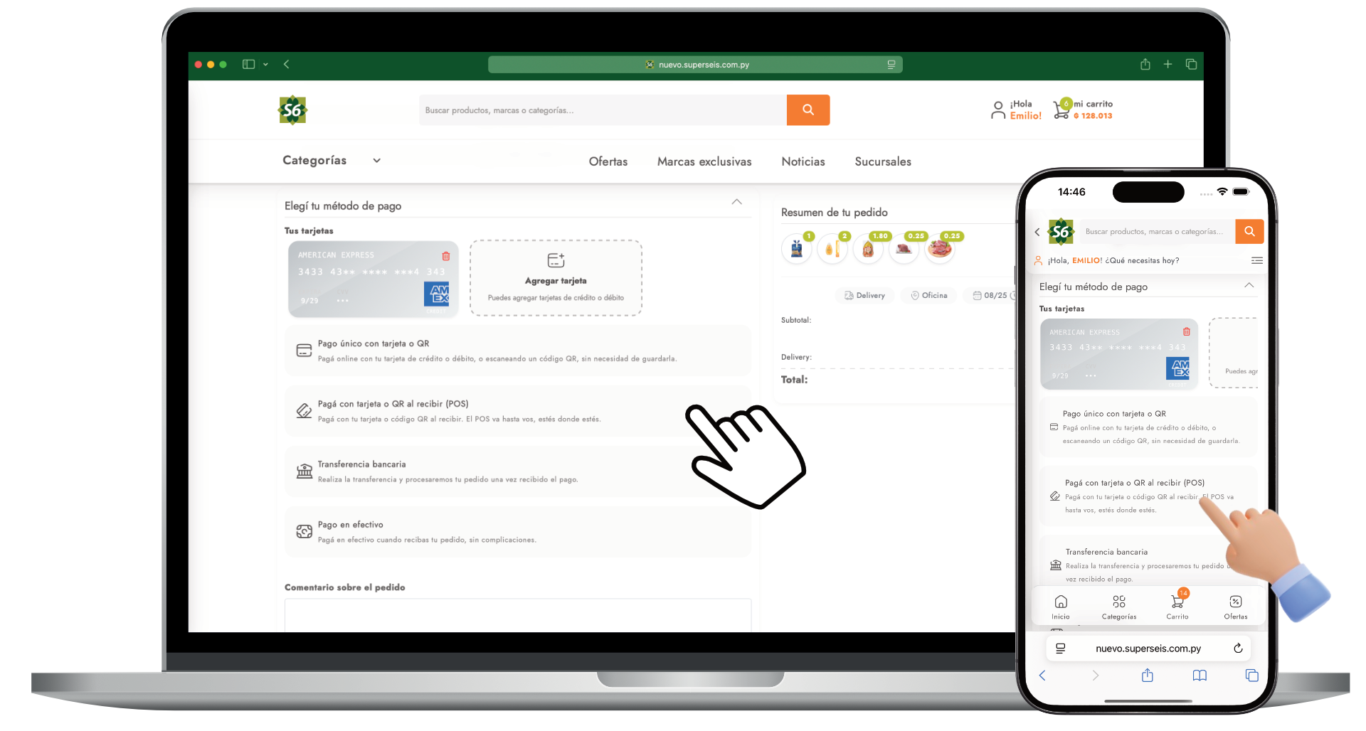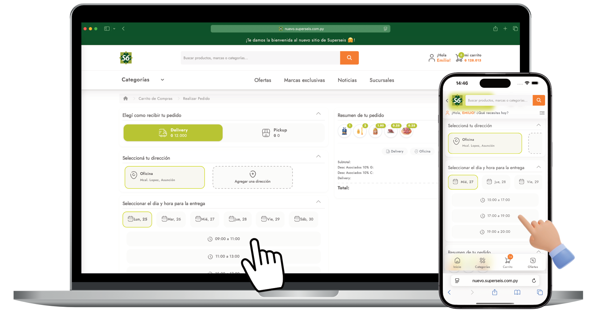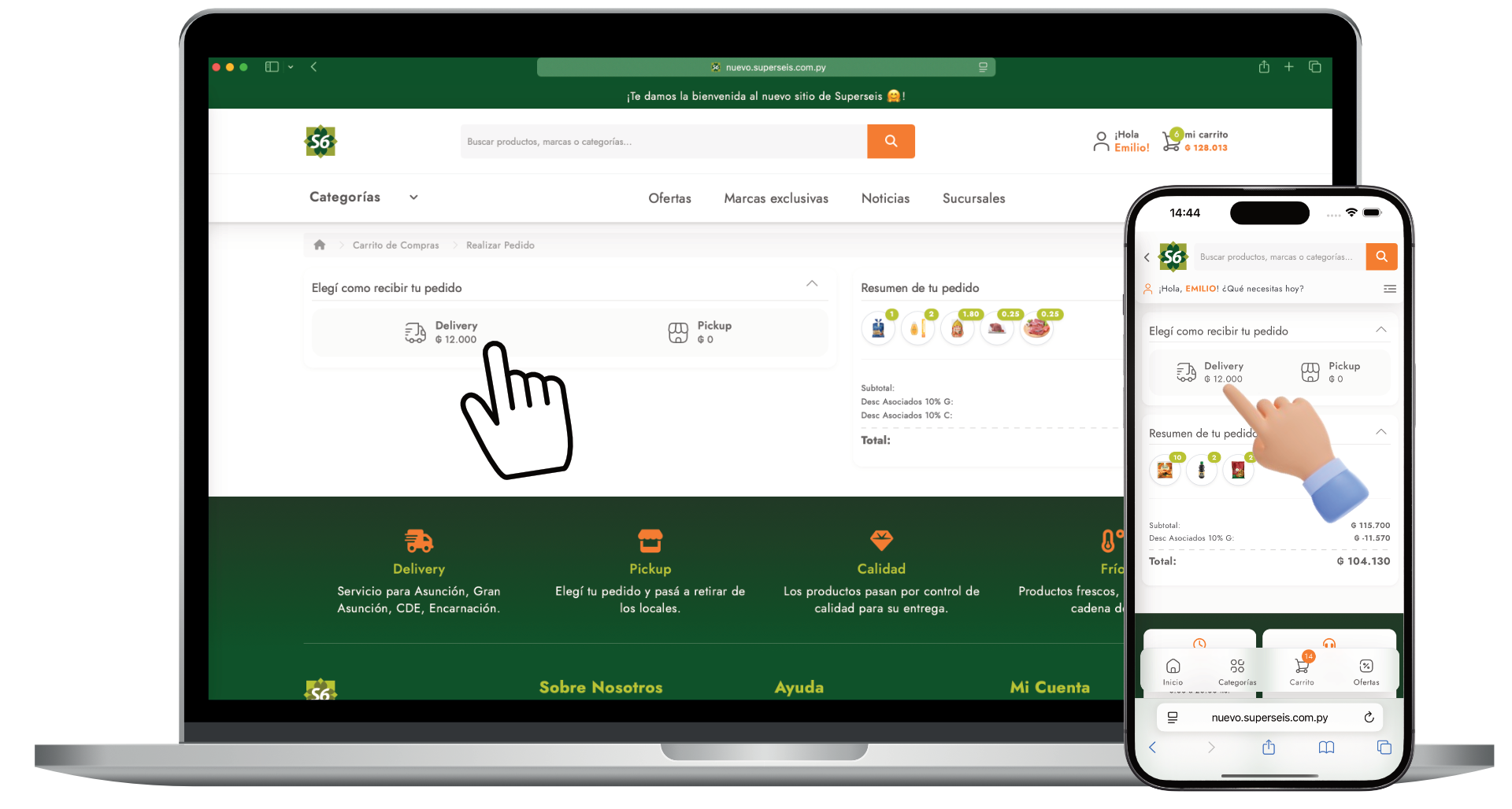 En el proceso de pago primero debes elegir si deseas que te enviemos tus compras apretando el botón "Delivery" o si deseas pasar a buscar tus compras apretando el botón "Retiro en tienda". Podés verificar el área de cobertura para estar seguro de que podemos llegar hasta tu casa u oficina.