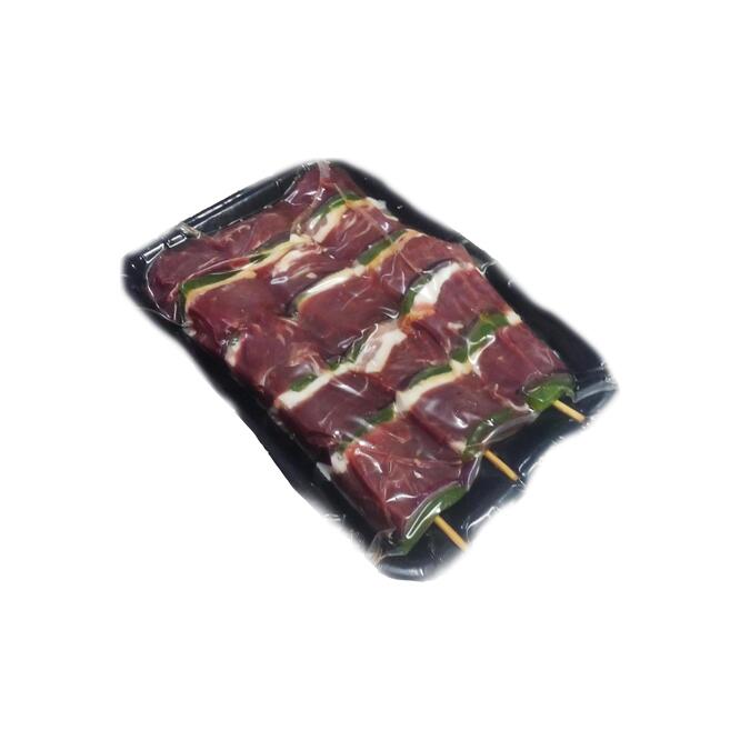 Brochet de carne jugosa, lista para la parrilla o el horno.