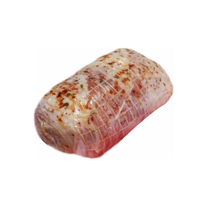 Matambre de cerdo arrollado, relleno y listo para hornear o asar, con un sabor irresistible.