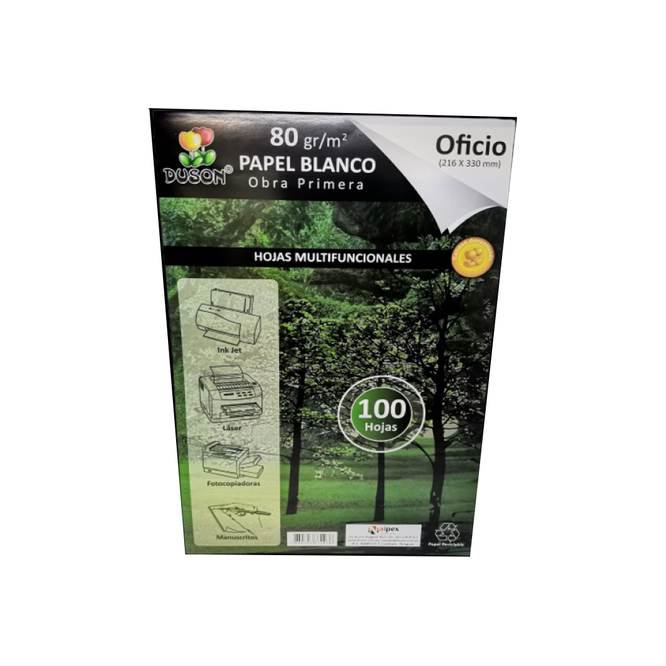 Hoja de papel Tamaño oficio En paquete Duson 100 Unidades