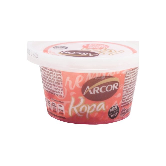 Prueba el Helado Kopa de Crema Americana y Frutilla Arcor en presentación de 90g, un postre refrescante.