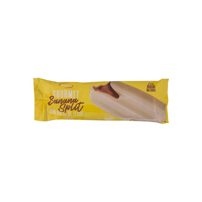 Helado Amandau gourmet sabor banana con dulce de leche, 60 gramos, ideal como postre individual.